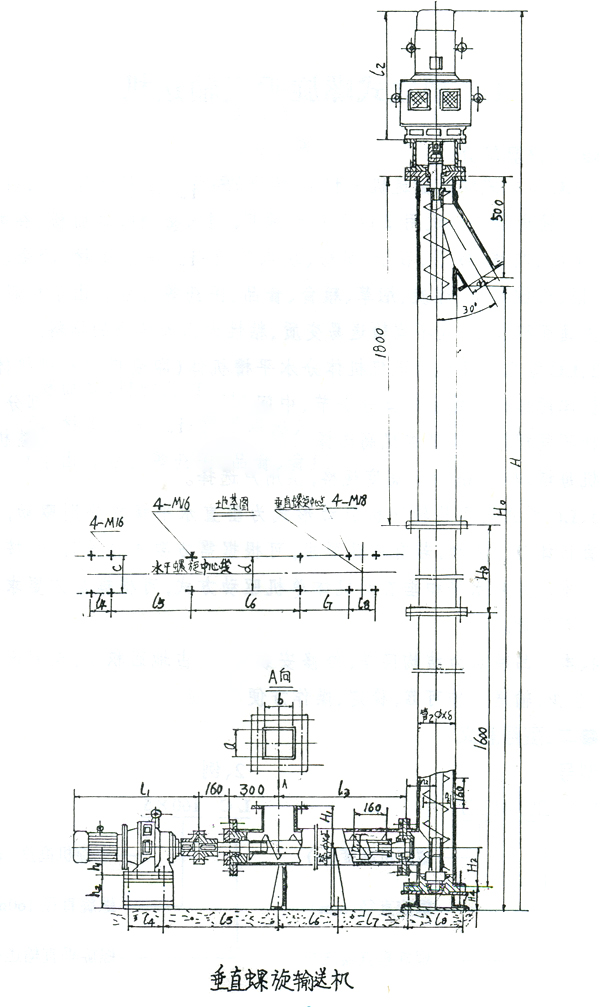 2、LC型立式螺旋輸送機分水平槽機體(即喂料螺旋槽機體)垂直機體兩部分。垂直機體分頭節、中間節、尾節三部分,每一部分又有集中不同規格的長度依機高選擇,可組成3~15m不同高度的整機,螺旋機每增加0.5m為一高度規格,供用戶選擇。